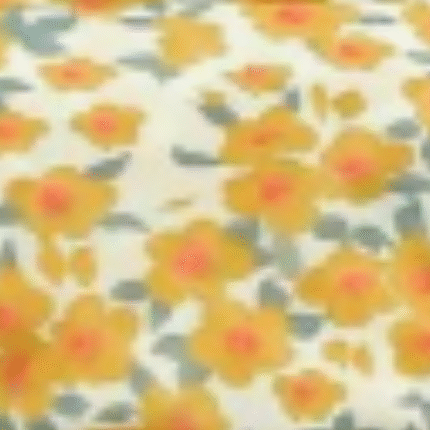 Cores caramelo, floral, folhas, listras, salmão e verde desenvolvidos em chiffon.
