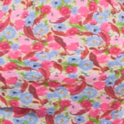 Cores floral pink, floral preto e preto rabisco desenvolvidos em new sabia estampado.