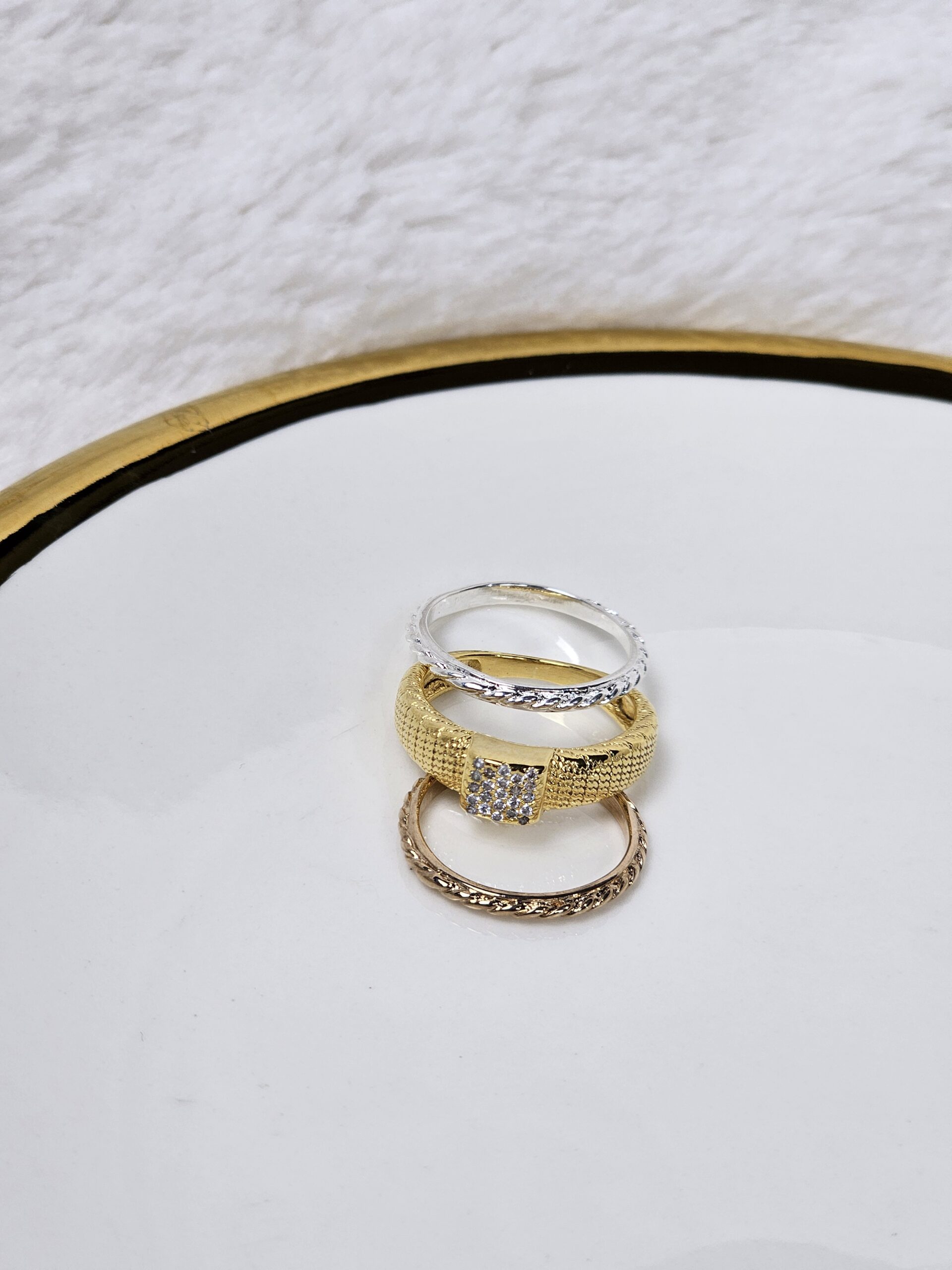 NSFA001 Trio Multifuncional de Anel Cravejado Zircônia em 3 Ouros
