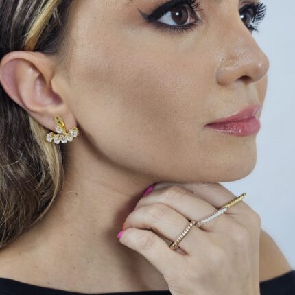 Peça multifuncional, possibilitando mais de uma forma de uso. Semijoias de alto padrão, com banho de 5 a 10 milésimos de ouro 18k, com excelente qualidade e durabilidade. Hipoalérgico. Pedras de zircônia.