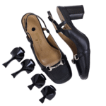 Seu design atemporal ganha um toque inovador com três pares de saltos intercambiáveis, que permitem adaptar o modelo à sua rotina e ao seu estilo.