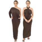 Vestido transformável que pode ser usado de diferentes formas em diversas ocasiões. Ao adquirir nossa peça, você receberá um QR Code com vídeo explicativo ensinando como transformá-la.