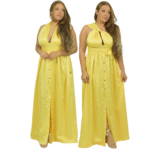 Com um design fluido que acompanha seus movimentos, pode ser transformado em diversos modelos, adaptando-se a diferentes ocasiões. Permita-se fluir e encantar em qualquer momento, explorando todas as possibilidades que este vestido oferece. Acompanha argola dourada.