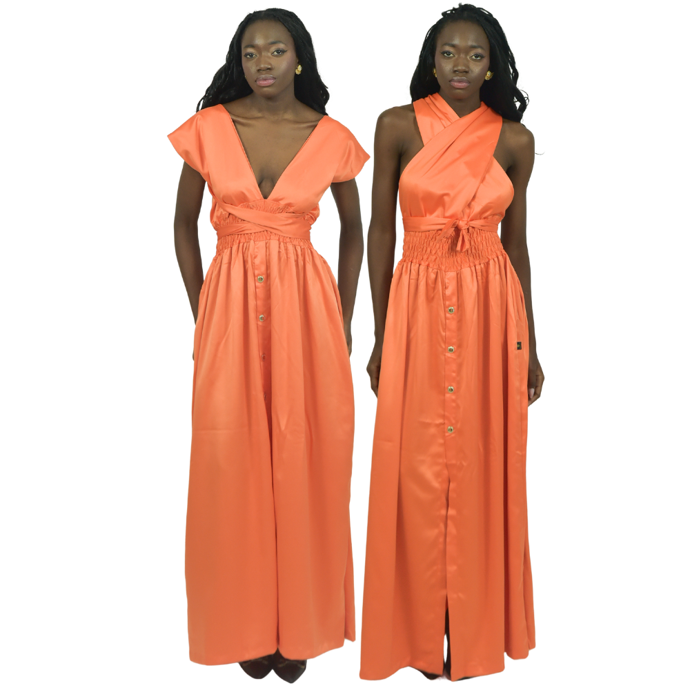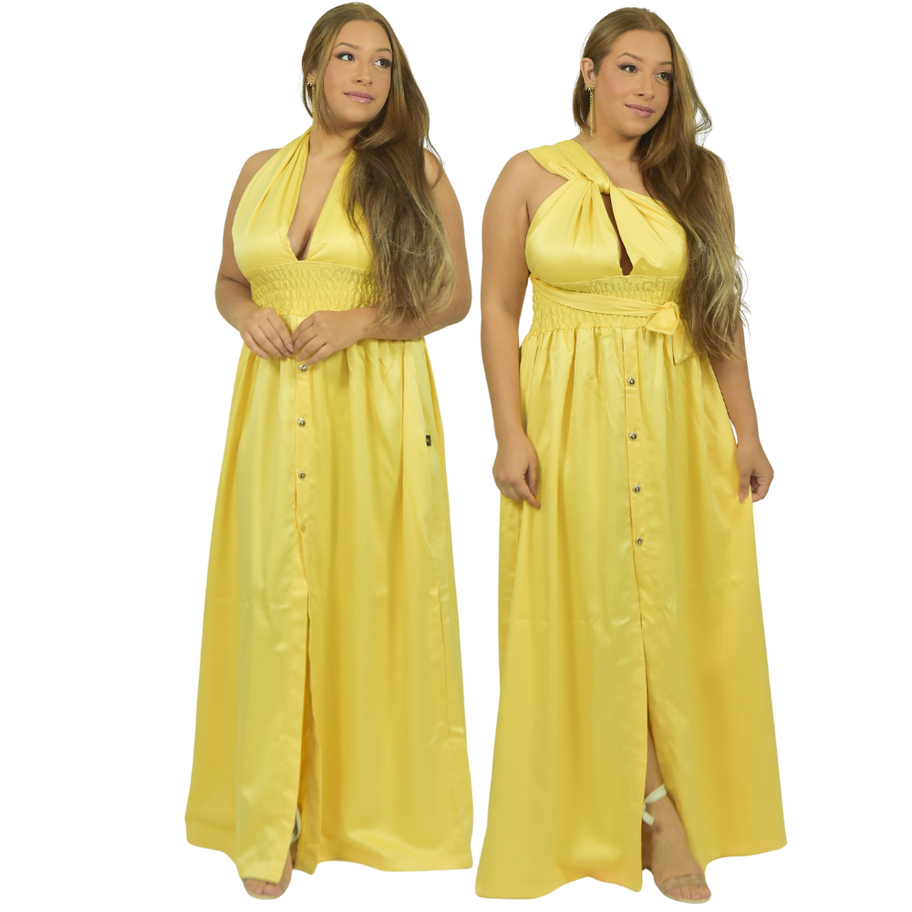 Vestido transformável que pode ser usado de diferentes formas em diversas ocasiões. Ao adquirir nossa peça, você receberá um QR Code com vídeo explicativo ensinando como transformá-la.